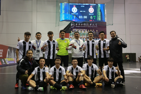 在8進(jìn)4淘汰賽中,上理工迎來勁敵北京大學(xué)。大強(qiáng)度的連續(xù)作戰(zhàn),小將們體力消耗巨大,傷病不斷,但是唯有拼搏才有出路,從教練員到隊員,全隊上下眾志成城,克服了心理和體力的挑戰(zhàn),在0:3落后的不利局面下,充分發(fā)揮了體育的頑強(qiáng)拼搏精神,奮起直追,連續(xù)進(jìn)球,將比賽鎖定在5:5送進(jìn)加時。進(jìn)入加時賽,我校隊員們徹底放下心理包袱,穩(wěn)穩(wěn)控制了場上局面,以7:6的比分結(jié)束了本場比賽,成為了本次大戰(zhàn)的贏家,歷史性地闖進(jìn)全國4強(qiáng)。