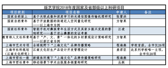 在學(xué)校領(lǐng)導(dǎo)的大力支持和科技處等相關(guān)部門(mén)的精心指導(dǎo)下,版藝學(xué)院工文藝學(xué)科融創(chuàng)發(fā)展取得新進(jìn)展。不僅科研經(jīng)費(fèi)較往年大幅提高,高質(zhì)量論文更加凸顯學(xué)科特色,同時(shí)國(guó)家及省部級(jí)科研項(xiàng)目立項(xiàng)數(shù)取得歷史性突破,其中上海市藝術(shù)規(guī)劃是我校首獲的藝術(shù)類(lèi)基金項(xiàng)目。