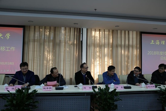 2019年1月18日,學(xué)校2018年度技術(shù)轉(zhuǎn)移工作總結(jié)會(huì)在格致堂108召開。會(huì)議邀請到上海教委科發(fā)中心主任陸震、上海張江高校協(xié)同創(chuàng)新研究院院長倪爭技出席,學(xué)校副校長劉平、技術(shù)轉(zhuǎn)移中心主任張大偉、副主任管驍、上海理工技術(shù)轉(zhuǎn)移有限公司總經(jīng)理童正明及各技術(shù)轉(zhuǎn)移工作站站長近30人參加會(huì)議。會(huì)議由張大偉主持。
