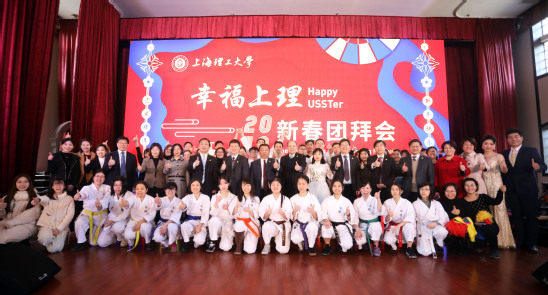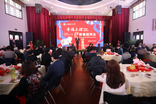 天晴地朗春光好,金豬迎年氣象新。1月24日上午,我校在學(xué)生活動(dòng)中心舉行“幸福上理”2019新春團(tuán)拜會(huì)。原市人大教育科學(xué)文化衛(wèi)生委員會(huì)主任薛明揚(yáng)、楊浦區(qū)委常委、宣傳部部長(zhǎng)劉東昌,中國(guó)工程院院士、上海市教育功臣莊松林以及全體校領(lǐng)導(dǎo),上海電纜研究所、上海材料研究所、上海電動(dòng)工具研究所、上海工業(yè)鍋爐研究所、滬東醫(yī)院、定海街道等合作單位領(lǐng)導(dǎo),版專、上理普陀附屬實(shí)驗(yàn)學(xué)校、附屬初中、國(guó)家大學(xué)科技園等大學(xué)系統(tǒng)單位領(lǐng)導(dǎo)、學(xué)校歷任黨政領(lǐng)導(dǎo)、曾在學(xué)校工作的領(lǐng)導(dǎo)、離退休老同志,市(區(qū))人大代表、政協(xié)委員,各民主黨派、統(tǒng)戰(zhàn)團(tuán)體負(fù)責(zé)人、校辦企業(yè)相關(guān)單位負(fù)責(zé)人,學(xué)校各部門負(fù)責(zé)人、師生代表等150余人歡聚一堂,共迎新春。
