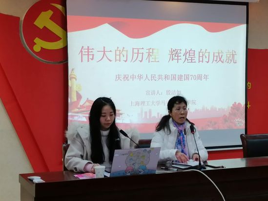 為迎接祖國(guó)七十華誕,展現(xiàn)新時(shí)代的理論力量與青年風(fēng)采,馬克思主義學(xué)院以習(xí)近平新時(shí)代中國(guó)特色社會(huì)主義思想研習(xí)社(宣講團(tuán))成員為主體,在寒假期間組織開展了20余場(chǎng)(次)以“回首輝煌七十載,齊心共筑中國(guó)夢(mèng)”為主題的理論宣講和社情調(diào)研活動(dòng)。