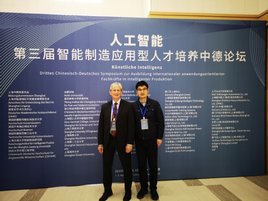 3月8日至3月9日, “人工智能:第三屆智能制造應(yīng)用型人才培養(yǎng)中德論壇”在上海電機(jī)學(xué)院臨港校區(qū)順利舉行。我校中德學(xué)院電氣專業(yè)負(fù)責(zé)人沃佩爾教授(G. Vaupel)受邀做主題報(bào)告,中德學(xué)院相關(guān)同志陪同。該論壇邀請(qǐng)了百余名中德高校、企業(yè)、研究機(jī)構(gòu)代表,聚焦“人工智能與智能制造的融合”的主題探討了應(yīng)用型人才培養(yǎng)的新思路和新方法,共商加快智能制造產(chǎn)業(yè)發(fā)展、提升應(yīng)用型人才培養(yǎng)質(zhì)量之策。