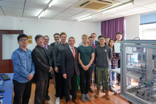 會(huì)議最后,貝爾教授發(fā)表了就職演講;蔡永蓮副校長(zhǎng)與特爾舍爾校長(zhǎng)高度贊揚(yáng)了此次會(huì)談所取得的積極成果,肯定了中德團(tuán)隊(duì)的工作,同時(shí)也對(duì)雙方未來(lái)的長(zhǎng)遠(yuǎn)發(fā)展與合作進(jìn)行了展望。會(huì)后,大家還參觀了中德共建的工業(yè)4.0實(shí)驗(yàn)室。