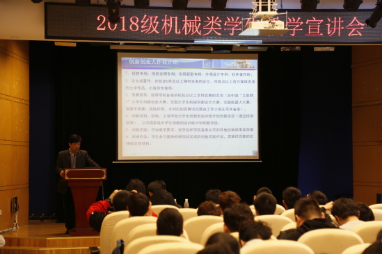 在宣講會中,錢煒副院長以“學海無涯,只爭朝夕”為主題,主要講述了學科領域與專業(yè)建設、學科競賽、創(chuàng)新創(chuàng)業(yè)大作業(yè)及2018級學生榮譽學位項目等內(nèi)容。他首先介紹了學科領域和近年學院取得的專業(yè)建設成就,對各類競賽進行了詳細的說明,并鼓勵大家積極參加學相關科競賽和加強創(chuàng)新意識及實踐動手能力,參加競賽也是本專業(yè)培養(yǎng)計劃中獲得創(chuàng)新創(chuàng)業(yè)大作業(yè)學分的重要途徑之一。他還詳細解讀了學校及學院創(chuàng)新創(chuàng)業(yè)大作業(yè)有關的文件和實施細則。最后,錢煒副院長重點介紹了自2018屆開始的上海理工大學本科生“榮譽學位”項目,此項目主要針對學有余力、追求卓越的工學專業(yè)學生,學生在完成本專業(yè)培養(yǎng)計劃的前提下,進入更具挑戰(zhàn)性的“榮譽學位”課程修讀,在達到學校相應標準后,由學校統(tǒng)一授予上海理工大學“榮譽學士學位”證書,希望大家積極爭取,努力申報。