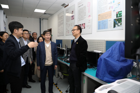 陳國強一行在莊松林院士的陪同下,參觀了學(xué)校近年來聚焦醫(yī)學(xué)實際需求,交叉融合光學(xué)、機械、動力、材料、控制、系統(tǒng)、生物醫(yī)學(xué)工程、人工智能等多學(xué)科力量,成功研發(fā)的一系列可直接應(yīng)用于臨床物理治療的產(chǎn)品和技術(shù)。