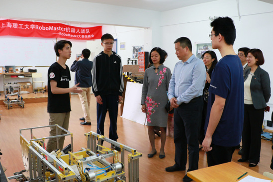 座談會結(jié)束后,張穎江副校長一行參觀了中英學院教學設(shè)施、學生創(chuàng)新與創(chuàng)業(yè)中心、學習資源中心和英國茶室。在學生創(chuàng)新與創(chuàng)業(yè)中心參觀了優(yōu)秀學生社團代表——“機器人社團”、“星墨社團”和“Actor易創(chuàng)社團”。