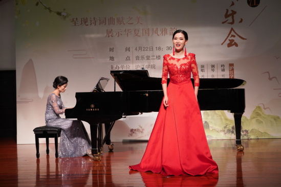 4月22日晚,由滬江學(xué)院主辦的第一期滬江詩樂會(huì)在上海理工大學(xué)音樂堂舉行。滬江學(xué)院劉永、張宇迪、董劍戟三位教師攜手青年女高音歌唱家、上海師范大學(xué)聲樂系周燕燕老師,及上海知名書畫家王麗紅老師一起,為上海理工大學(xué)220余名師生及來自校外的詩詞愛好者獻(xiàn)上了一場吟誦、鋼琴、演唱、書法、繪畫五位一體的詩樂盛宴。