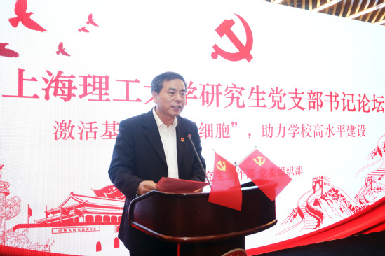 為深入學(xué)習(xí)貫徹習(xí)近平新時(shí)代中國特色社會(huì)主義思想和黨的十九大精神,落實(shí)黨中央抓基層、強(qiáng)基礎(chǔ)的新要求,以紀(jì)念新中國成立70周年為契機(jī),積極探索鞏固上海理工大學(xué)研究生基層黨建工作成效的新機(jī)制,架設(shè)起一座黨建互學(xué)互鑒的橋梁,共謀學(xué)生基層黨建發(fā)展良策。2019年5月17日,上海理工大學(xué)首屆研究生黨支部書記論壇在圖文信息中心第一會(huì)議室舉辦。本屆論壇以“激活基層黨建‘細(xì)胞’,助力學(xué)校高水平建設(shè)”為主題,由上海理工大學(xué)黨委研究生工作部、黨委組織部主辦,研究生黨支部書記聯(lián)合會(huì)承辦。上海理工大學(xué)黨委副書記、校長丁曉東,黨委副書記、副校長盛春,相關(guān)職能部處負(fù)責(zé)人及相關(guān)學(xué)院學(xué)生工作負(fù)責(zé)人出席,來自同濟(jì)大學(xué)、東華大學(xué)、上海外國語大學(xué)等滬上兄弟高校的優(yōu)秀研究生黨支部書記代表和我校全體研究生黨支部書記共計(jì)100余人參加,開幕式由黨委研究生工作部長魏東主持。