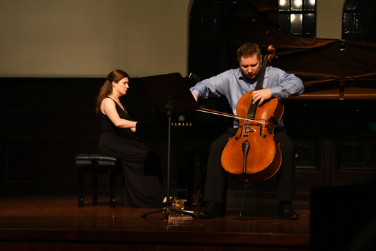5月30號(hào)晚上七點(diǎn),鋼琴大提琴二重奏音樂會(huì)于我校音樂堂舉行,兩位音樂家給現(xiàn)場觀眾帶來了精彩表演,演奏了Efrian Amaya、韋伯恩、Arvo Part及貝多芬的曲目。整個(gè)演奏過程分為四個(gè)部分,每一個(gè)部分都給聆聽著帶來了不一樣的感受,側(cè)耳傾聽,大提琴聲與鋼琴聲的交相輝映,音樂似乎是由遠(yuǎn)到近、由小到大,一陣陣輕柔婉轉(zhuǎn)的“序曲”過后,是無比強(qiáng)烈的顫音,一個(gè)個(gè)激昂的音符敲打著聽眾的心葉,優(yōu)雅歡快。一小時(shí)的音樂會(huì)到了尾聲,觀眾們的掌聲久久不息,向音樂家們致以感謝,感謝他們帶來美妙的演奏。