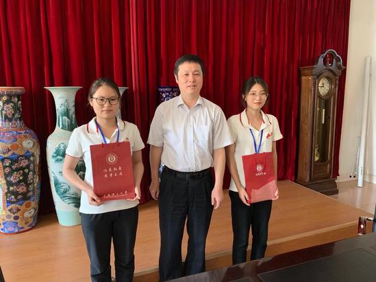 丁校長慰問王倩雯和魯嘉玲同學(xué)