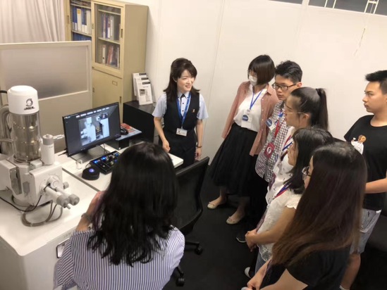 訪學(xué)團(tuán)參訪了世界頂級(jí)的科學(xué)儀器生產(chǎn)制造商—日本電子株式會(huì)社(JEOL),有至少十三位世界各國(guó)的科學(xué)家使用該公司生產(chǎn)的設(shè)備而獲得諾貝爾獎(jiǎng),其先進(jìn)的技術(shù)已然成為業(yè)界標(biāo)桿。訪學(xué)團(tuán)成員在工作人員的指導(dǎo)下操作掃描電子顯微鏡觀察頭發(fā)的顯微結(jié)構(gòu)及其元素,感受顯微世界的巨大魅力。