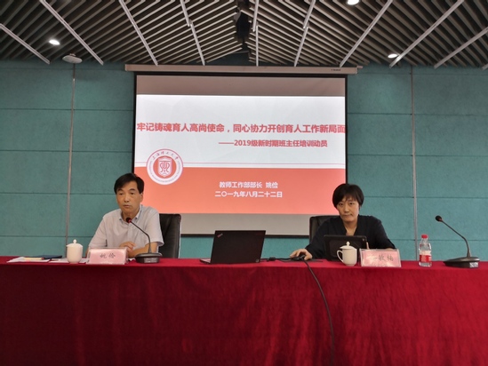 教師工作部部長姚儉作了題為“牢記鑄魂育人高尚使命,同心協(xié)力開創(chuàng)育人工作新局面”的動(dòng)員報(bào)告。他表示,新時(shí)期班主任工作是學(xué)校對(duì)國家要求“加強(qiáng)高校思想政治工作”的積極響應(yīng),是學(xué)?!皥?jiān)持把立德樹人作為中心環(huán)節(jié),把思想政治工作貫穿教育教學(xué)全過程”的有效舉措。大學(xué)班主任的責(zé)任重大,使命光榮,能夠在學(xué)生思維定型、人格塑造的關(guān)鍵期,通過潛移默化的引導(dǎo)和教育,使學(xué)生增強(qiáng)使命擔(dān)當(dāng)意識(shí),立德成人、立志成才,樹立正確世界觀、人生觀、價(jià)值觀,把愛國情、強(qiáng)國志、報(bào)國行自覺融入國家事業(yè)的發(fā)展中。新時(shí)期本科生班主任,要在開展思想政治教育、加強(qiáng)班風(fēng)學(xué)風(fēng)建設(shè)、加強(qiáng)班級(jí)指導(dǎo)管理、做好學(xué)術(shù)引導(dǎo)和就業(yè)指導(dǎo)等方面工作的基礎(chǔ)上,積極創(chuàng)建班級(jí)特色品牌,運(yùn)用好“電子班級(jí)”系統(tǒng)密切與學(xué)生的溝通。同時(shí),學(xué)校將積極搭建平臺(tái),加強(qiáng)班主任的交流和培訓(xùn),開展考評(píng)和表彰。