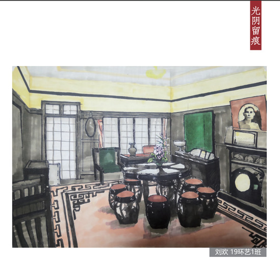 上海城建職業(yè)學院學生手繪的宋慶齡故居內(nèi)景。