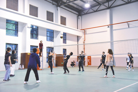 排球競(jìng)賽課上進(jìn)行比賽的上理學(xué)子們