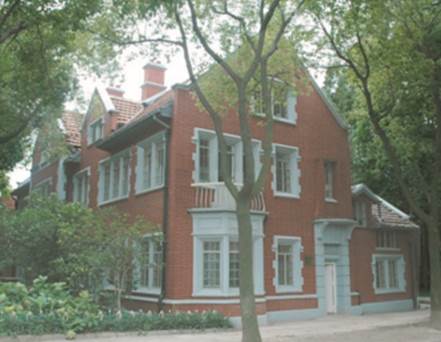 思福堂是磚木結(jié)構(gòu)建筑,清水紅磚墻,白色窗套,開窗方正,南立面有浮雕式圓拱,陽臺(tái)裝飾卷草紋柱子,三角形山墻外飾以名木框架。曾用作女教員宿舍。
