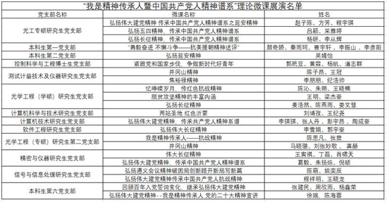 5月初,光電學(xué)院面向全院各基層黨支部開(kāi)展“我是精神傳承人暨中國(guó)共產(chǎn)黨人精神譜系”理論微課展演,截止5月17日,學(xué)院共計(jì)收到14個(gè)黨支部22部微黨課。微黨課以習(xí)近平新時(shí)代中國(guó)特色社會(huì)主義思想為主題,以傳承中國(guó)共產(chǎn)黨人精神譜系為主線,以團(tuán)隊(duì)或者個(gè)人理論宣講為形式,以中國(guó)共產(chǎn)黨人精神譜系各精神為內(nèi)容。大學(xué)生黨員通過(guò)撰寫(xiě)微黨課教學(xué)設(shè)計(jì)、制作理論宣講ppt、拍攝理論宣講微視頻,以青年人話語(yǔ)體系和學(xué)習(xí)方式講好中國(guó)共產(chǎn)黨人革命故事、奮斗故事和勵(lì)志故事,教育引導(dǎo)廣大青年大學(xué)生以習(xí)近平新時(shí)代中國(guó)特色社會(huì)主義思想為指導(dǎo),深刻領(lǐng)悟“兩個(gè)確立”的決定性意義,不斷增強(qiáng)“四個(gè)意識(shí)”、堅(jiān)定“四個(gè)自信”、做到“兩個(gè)維護(hù)”。