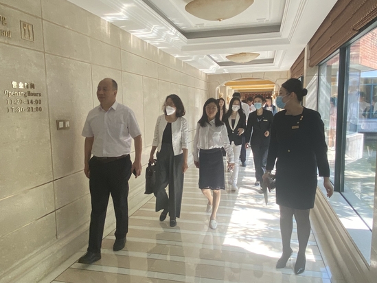 為深入學習貫徹落實習近平新時代中國特色社會主義思想,堅持把理論學習、調(diào)查研究有機融合,6月2日上午,中英國際學院黨委書記李妍,常務(wù)副院長單彥廣,黨委副書記、副院長蔡卉,人力資源與規(guī)劃部門負責人,學生管理部負責人,輔導(dǎo)員及學生代表一行赴上海東湖(集團)公司旗下的上海西郊賓館走訪調(diào)研。上海西郊賓館黨總支書記蘇勤、人力資源副總監(jiān)張華等負責人熱情接待。
