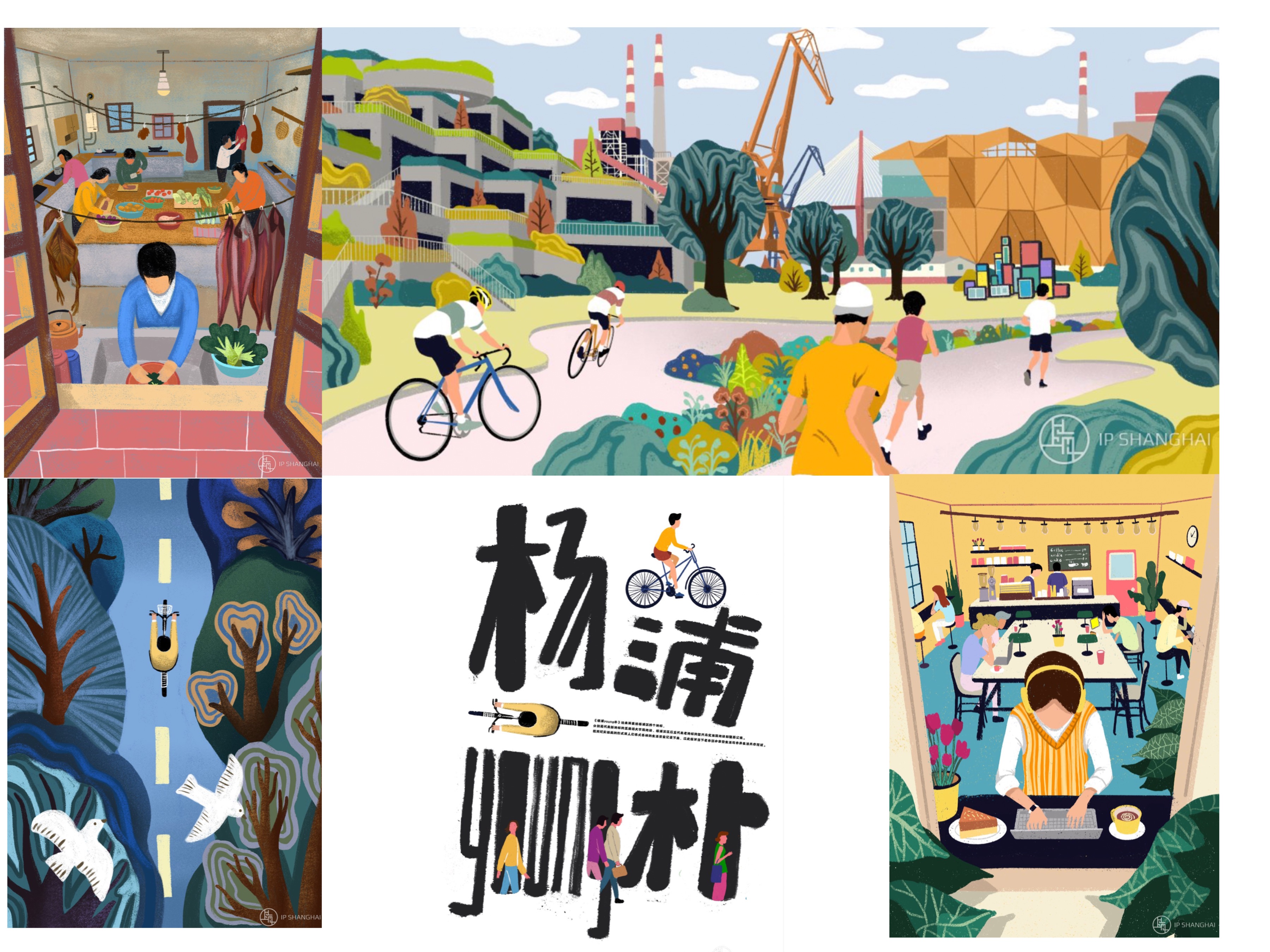 Luca的插畫色彩明亮,風格活潑,手繪感與肌理感很強,作品曾收錄于《The Shanghairen》封面集和中國青年作家報。而《楊浦young樸》中的部分作品也入選了本次IP SHANGHAI城市主題插畫展,在第六屆進博會新聞中心進行展示。