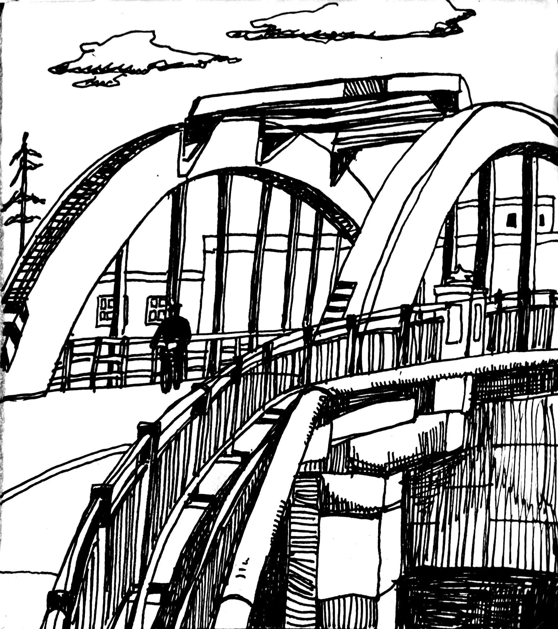 于是,Luca干脆將同學們排隊買卷餅的場景畫了下來,收錄進他的原創(chuàng)系列插畫《楊浦young樸》之中。同樣地,該系列插畫還囊括了許多他觀察到的具有濃濃生活氣息的畫面:五角場大學路熱鬧的街景、隆昌公寓里正在理發(fā)的老爺爺、在楊浦濱江滑滑板和騎自行車的人們……