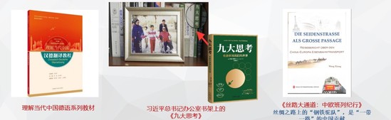 德語系黨員教師王婀娜教授參與2021年度國家社科基金重大項目子項目“高等學(xué)校外語類‘理解當(dāng)代中國’德語系列教材編寫與研究”。該課題的主要任務(wù)是以《習(xí)近平談治國理政》第二卷的重大主題為綱要,將習(xí)近平新時代中國特色社會主義思想系統(tǒng)融入外語類專業(yè)核心課程教材。同年,她受國家外文局委托翻譯出版“讀懂中國共產(chǎn)黨”系列叢書《中國共產(chǎn)黨這樣走來——從中共一大到中共十九大》(德文版)。在建黨100周年之際,該書銷量異?;鸨壳暗诙嬉呀?jīng)出版發(fā)行。同時,王婀娜教授團隊翻譯的《九大思考:重新審視我們的世界》為習(xí)近平總書記辦公室書架上的書籍之一。