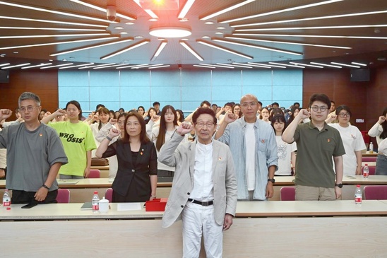 隨后,全體畢業(yè)生黨員在鮮艷的黨旗下高舉右拳,重溫入黨誓詞。那一句句嘹亮的宣誓詞,震動(dòng)著澎湃的使命初心,仰望心空,腳踏大地,用誓言再一次堅(jiān)定理想信念。
