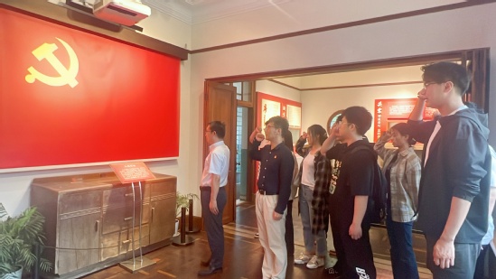 在參觀過(guò)程中,黨員同志被陳望道先生求真務(wù)實(shí)、精益求精的精神深深感動(dòng),尤其是在陳望道先生擔(dān)任復(fù)旦校長(zhǎng)時(shí),他曾說(shuō)“活著一天,就要為黨工作一天”,令在場(chǎng)所有人動(dòng)容。參觀最后,學(xué)院師生黨員一同面向黨旗重溫入黨誓詞。