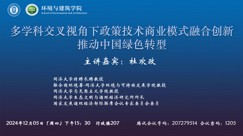 講座主題:多學(xué)科交叉視角下政策技術(shù)商業(yè)模式融合創(chuàng)新推動(dòng)中國(guó)綠色轉(zhuǎn)型