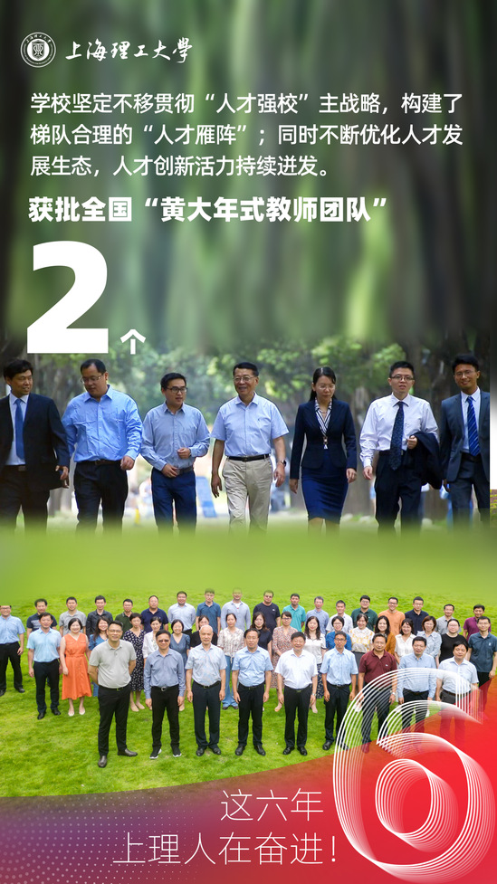 這六年,上海理工大學(xué)堅定不移貫徹“人才強?!敝鲬?zhàn)略,構(gòu)建了梯隊合理的“人才雁陣”;同時不斷優(yōu)化人才發(fā)展生態(tài),人才創(chuàng)新活力持續(xù)迸發(fā)。獲批全國“黃大年式教師團隊”2個。