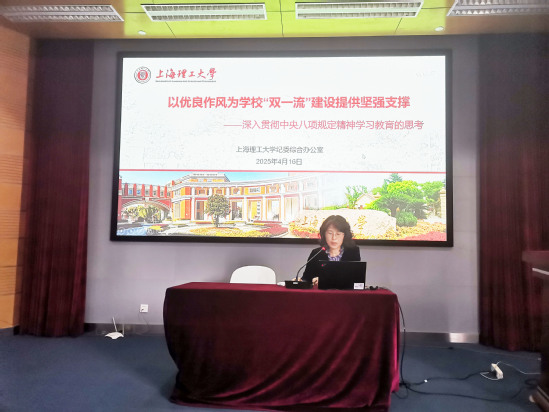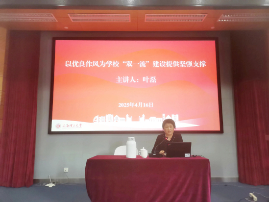 葉磊結(jié)合《習(xí)近平關(guān)于黨的作風(fēng)建設(shè)的論述摘編》的學(xué)習(xí)思考,以“以?xún)?yōu)良作風(fēng)為學(xué)校‘雙一流’建設(shè)提供堅(jiān)強(qiáng)支撐”為題,從實(shí)踐效果、制度成果和理論價(jià)值等三方面深入淺出地講解中央八項(xiàng)規(guī)定及其實(shí)施細(xì)則精神的核心要義,并結(jié)合當(dāng)前高校黨風(fēng)廉政建設(shè)和反腐敗斗爭(zhēng)的新形勢(shì)新要求,闡述鍥而不舍推動(dòng)八項(xiàng)規(guī)定精神化風(fēng)成俗的重要性,指出要以更高標(biāo)準(zhǔn)、更嚴(yán)要求推進(jìn)機(jī)關(guān)作風(fēng)建設(shè),機(jī)關(guān)黨員干部要發(fā)揮示范表率作用,以?xún)?yōu)良作風(fēng)凝心聚力干事創(chuàng)業(yè),助力學(xué)?!半p一流”建設(shè)。