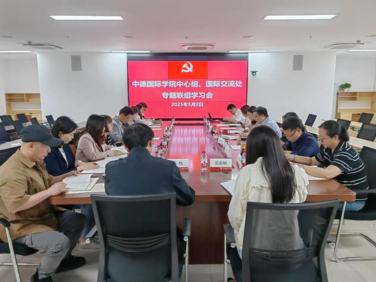 5月8日下午,中德國際學(xué)院黨委與國際交流處黨支部以“深化作風(fēng)建設(shè),推動(dòng)國際化辦學(xué)高質(zhì)量發(fā)展”為主題開展聯(lián)組學(xué)習(xí)。中德國際學(xué)院領(lǐng)導(dǎo)班子成員及理論學(xué)習(xí)中心組成員、國際交流處黨支部全體黨員參加會(huì)議。會(huì)議由中德國際學(xué)院黨委書記范正飛主持。