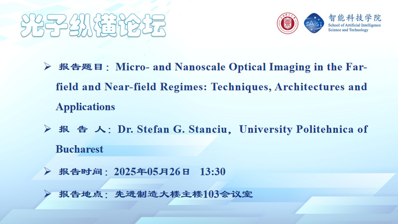 報(bào)告題目:Micro-and Nanoscale Optical Imaging in the Far-field and Near-field Regimes: Techniques, Architectures and Applications