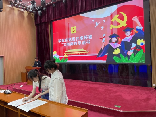 畢業(yè)生黨員代表簽署文明離校承諾書