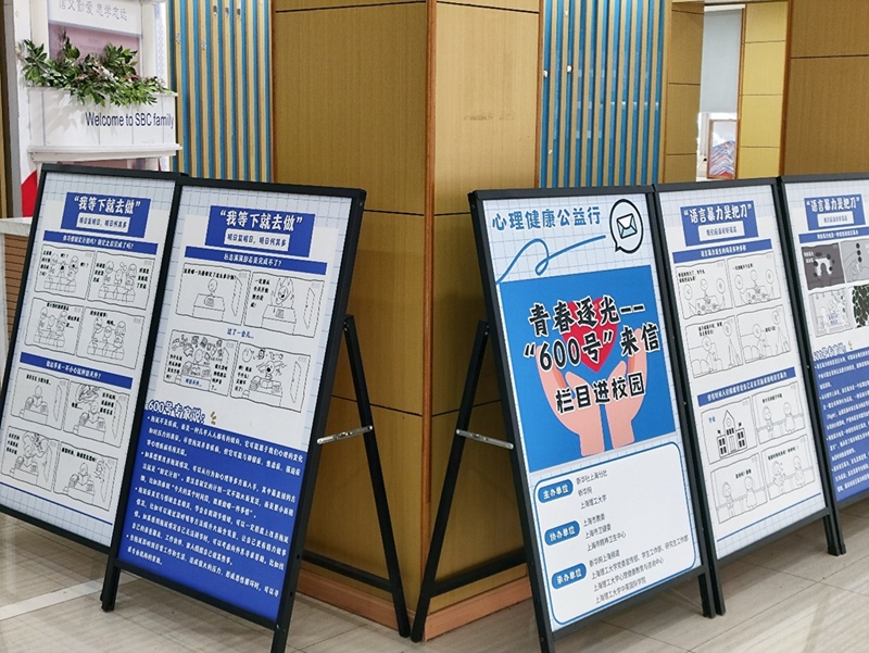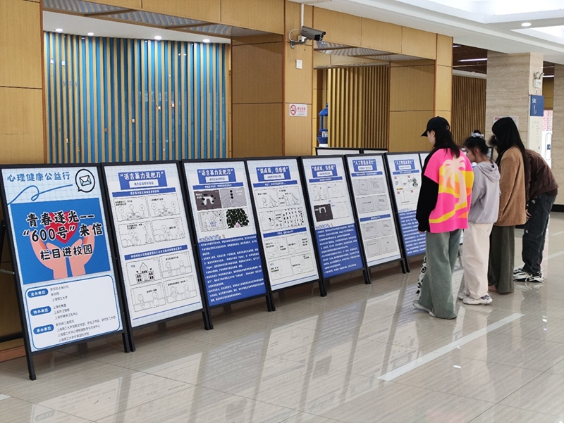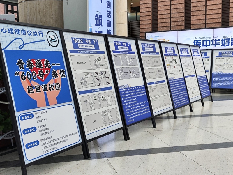 11月7日,“青春逐光——《‘600號’來信》欄目進校園”圖片展走進上海理工大學,在復興路校區(qū)教學樓與軍工路校區(qū)湛恩紀念圖書館同步展出?;顒油ㄟ^漫畫、文字與心理學知識相結合的形式,引導大學生以輕松、生動的方式關注心理健康,呵護心靈成長。