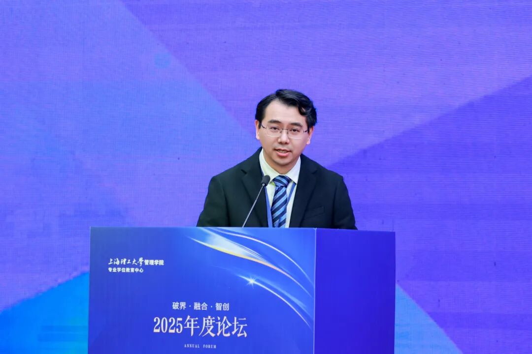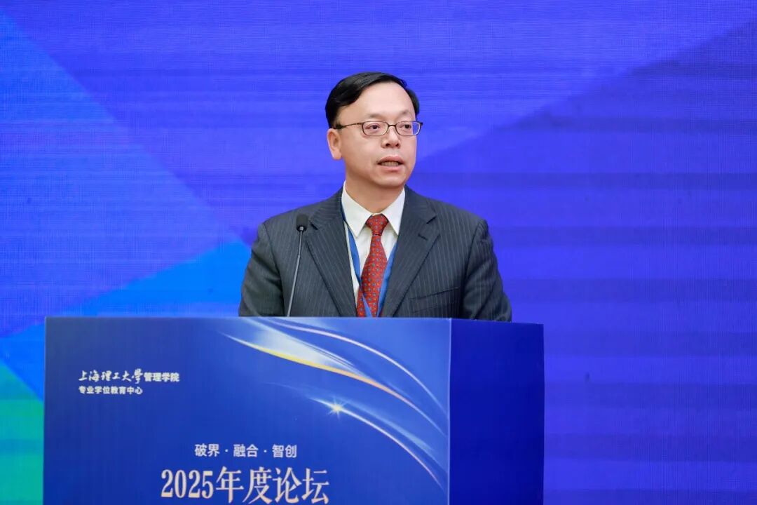 12月12日下午,上海理工大學管理學院在軍工路校區(qū)舉辦“破界·融合·智創(chuàng)共筑產(chǎn)教融合新生態(tài)”2025年度論壇。校黨委書記王凌宇,規(guī)劃發(fā)展處處長宇振盛,校友工作聯(lián)絡處處長曲德強,研究生院副院長鄭繼紅,霍尼韋爾(中國)總裁余鋒校友,經(jīng)緯創(chuàng)投合伙人、黃浦區(qū)政協(xié)委員唐磊校友,上海聯(lián)創(chuàng)投資管理合伙人朱一凡,上海國創(chuàng)投資有限公司董事長、上海藍絲帶公益基金會理事長白俊平校友,管理學院黨政領導等出席活動。論壇吸引近200名師生與校友代表現(xiàn)場參會,另有兩萬余人次線上同步觀看直播。開幕式由管理學院黨委書記馬靜波主持。