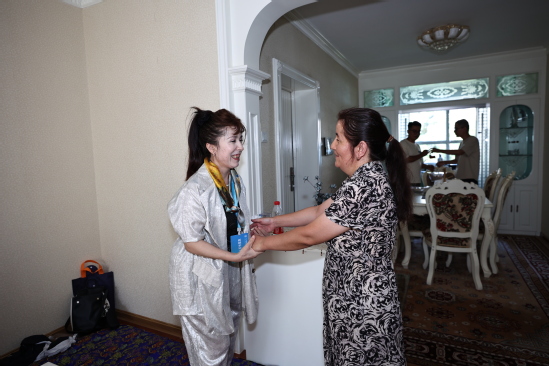 上海市“最美高校輔導員”頒獎(右六為瑪麗亞·居乃?。?/span>瑪麗亞老師與學生在一起家訪中與學生家長交流
