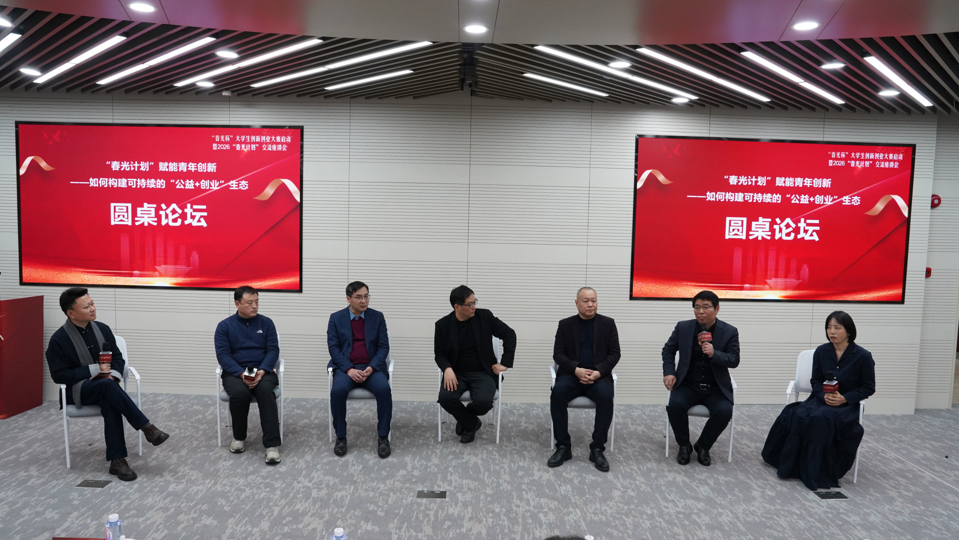 第一場圓桌論壇以“‘春光計劃’賦能青年創(chuàng)新——構建可持續(xù)的‘公益+創(chuàng)業(yè)’生態(tài)”為主題,由復旦大學社會學研究中心研究員孔云中主持。同濟大學經濟與管理學院專業(yè)學位中心招生主管孔祥星、上海水成科技股份有限公司董事長李少華、中國民辦教育協(xié)會高中分會副理事長余慧峰、上海昂煜電力市政建設集團有限公司董事長朱益、上海交大EMBA課程教授宋述東、復旦大學博士生導師唐明燕等嘉賓圍繞如何整合政府、高校、企業(yè)與社會組織資源,打造多方共贏、自我造血的公益創(chuàng)業(yè)生態(tài)展開深入探討。嘉賓們一致認為,“春光計劃”應以機制創(chuàng)新為核心,通過項目篩選、能力建設、資本鏈接與政策協(xié)同,形成“扶上馬、送一程、伴全程”的全周期支持鏈條,真正實現(xiàn)從“輸血”到“造血”的轉變。