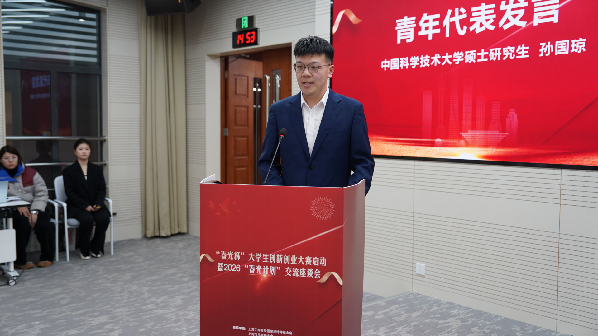 中國科學技術大學碩士研究生孫國瓊作為青年代表發(fā)言,分享自身在科研與創(chuàng)業(yè)實踐中的思考與感悟,展現(xiàn)了新時代青年的責任擔當與行動力。