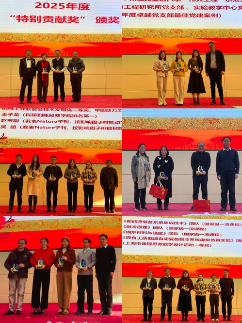 為表彰先進(jìn)、樹(shù)立典型,活動(dòng)中頒發(fā)“特別貢獻(xiàn)獎(jiǎng)”、“黨建貢獻(xiàn)獎(jiǎng)”及“教學(xué)貢獻(xiàn)獎(jiǎng)”等個(gè)人及團(tuán)隊(duì)獎(jiǎng)項(xiàng)。黃典貴、金晶、章立新等老師憑借在學(xué)科建設(shè)、青年教師指導(dǎo)及工會(huì)工作中的突出貢獻(xiàn)受到表彰;崔國(guó)民、武衛(wèi)東、楊薈楠、盛健等教學(xué)團(tuán)隊(duì)及王秋麟老師因卓越的教學(xué)探索獲此榮譽(yù)。蘇明旭副院長(zhǎng)、楊杰副院長(zhǎng)、錢(qián)海燕副書(shū)記分別為獲得“科研貢獻(xiàn)獎(jiǎng)”、“服務(wù)貢獻(xiàn)獎(jiǎng)”及“育人貢獻(xiàn)獎(jiǎng)”的老師頒獎(jiǎng)。竇玉海、李凌、崔巍等一大批科研骨干,陳曦、姜穎杰等管理服務(wù)人員,以及田雅芬、高鵬等育人先鋒接受了全院師生的致敬。此外,學(xué)院工會(huì)主席魏燕也對(duì)一年來(lái)默默奉獻(xiàn)的工會(huì)積極分子和優(yōu)秀工會(huì)工作者進(jìn)行了表彰,并感謝了全院教師對(duì)工會(huì)活動(dòng)的支持。活動(dòng)特別設(shè)置致敬環(huán)節(jié),向服務(wù)十年整、二十年整的教師們以及2025年光榮退休的陶樂(lè)仁、祁影霞老師獻(xiàn)花。