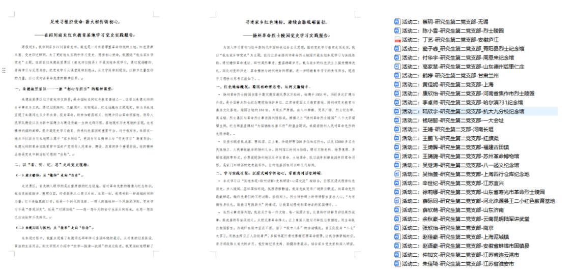 在“足跡尋根,薪火相傳”紅色教育基地學習實踐中,師生黨員、入黨積極分子及廣大學生積極響應,深入家鄉(xiāng)及周邊地區(qū)的紅色舊址、革命紀念館、烈士陵園等場所,開展實地學習。從上海中共一大會址、四行倉庫,到江蘇周恩來紀念館、抗日山烈士陵園,從浙江嘉興南湖到河南鄭州二七紀念館,從山東壽光市烈士陵園到云南陸軍講武堂,師生們在歷史現(xiàn)場感悟初心使命,在紅色足跡中汲取奮進力量。活動共收到學習報告百余篇,內容詳實、思考深刻,充分體現(xiàn)了黨史學習教育的實踐成效與思想深度。
