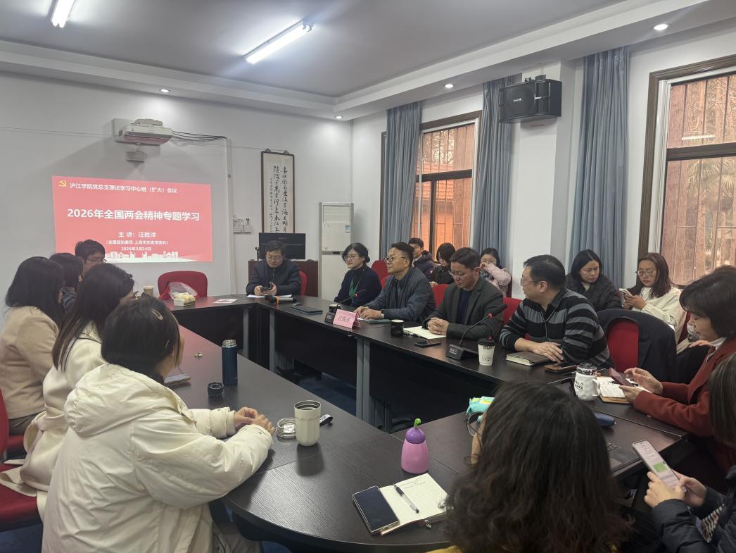 3月24日,滬江學(xué)院黨總支召開(kāi)理論學(xué)習(xí)中心組(擴(kuò)大)會(huì)議,特別邀請(qǐng)全國(guó)政協(xié)委員、上海文史館館長(zhǎng)汪勝洋蒞臨會(huì)場(chǎng),為全體黨員作“2026年全國(guó)兩會(huì)精神”專題學(xué)習(xí)報(bào)告。會(huì)議由學(xué)院副院長(zhǎng)朱慧鋒主持,學(xué)院全體教師出席。