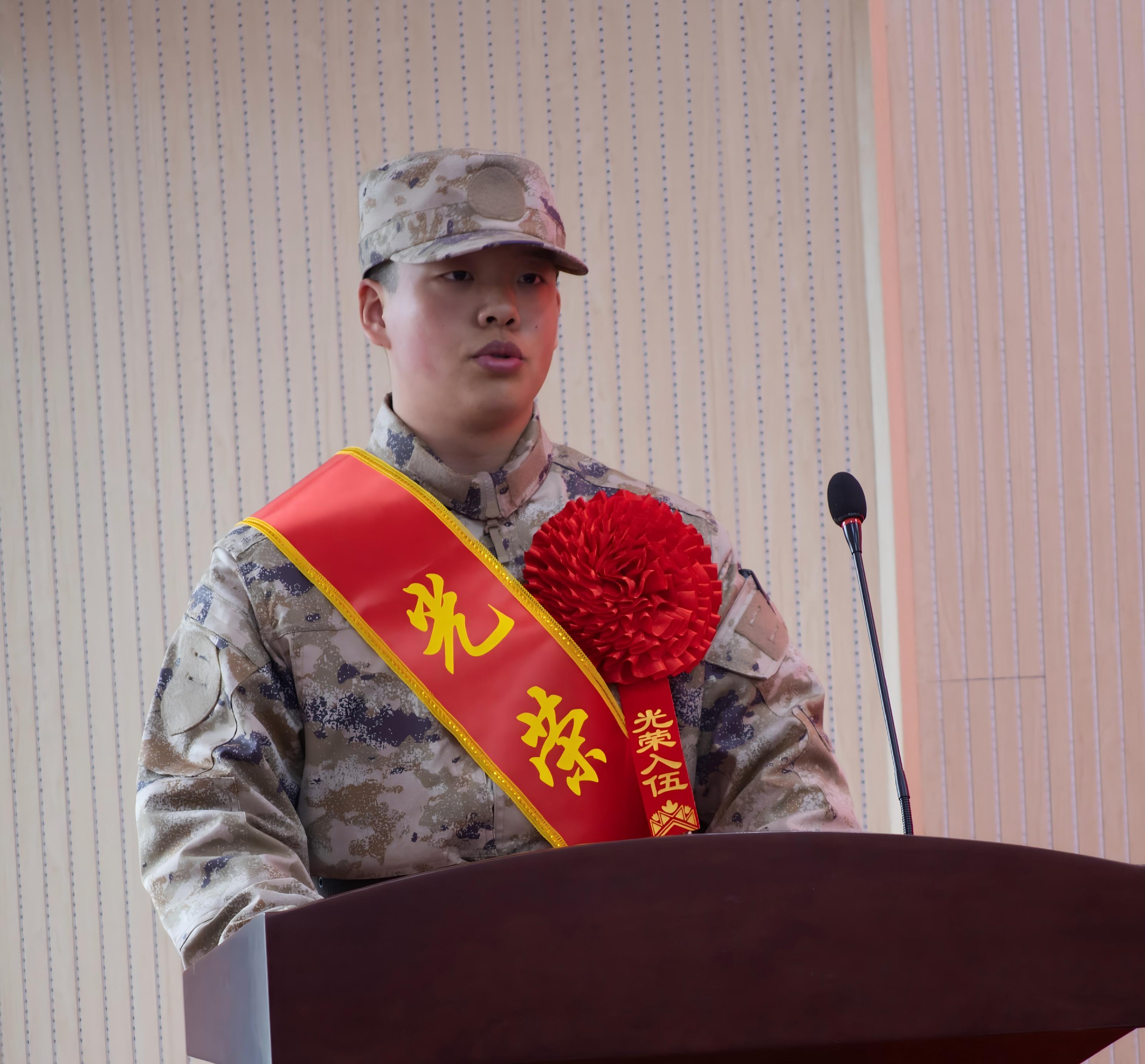 身披戎裝、意氣風(fēng)發(fā)的新兵們目光堅(jiān)定、精神抖擻,懷揣著對(duì)軍營(yíng)的憧憬和對(duì)祖國(guó)的忠誠(chéng),整裝待發(fā)。我校優(yōu)秀退役大學(xué)生士兵彭威深情寄語(yǔ)新兵:“軍營(yíng)是淬煉青春的大熔爐,愿你們珍惜這段時(shí)光,在挑戰(zhàn)中成長(zhǎng)、在汗水中收獲,帶著初心與勇氣乘風(fēng)破浪,用青春與擔(dān)當(dāng)書寫屬于自己的軍旅榮光!”