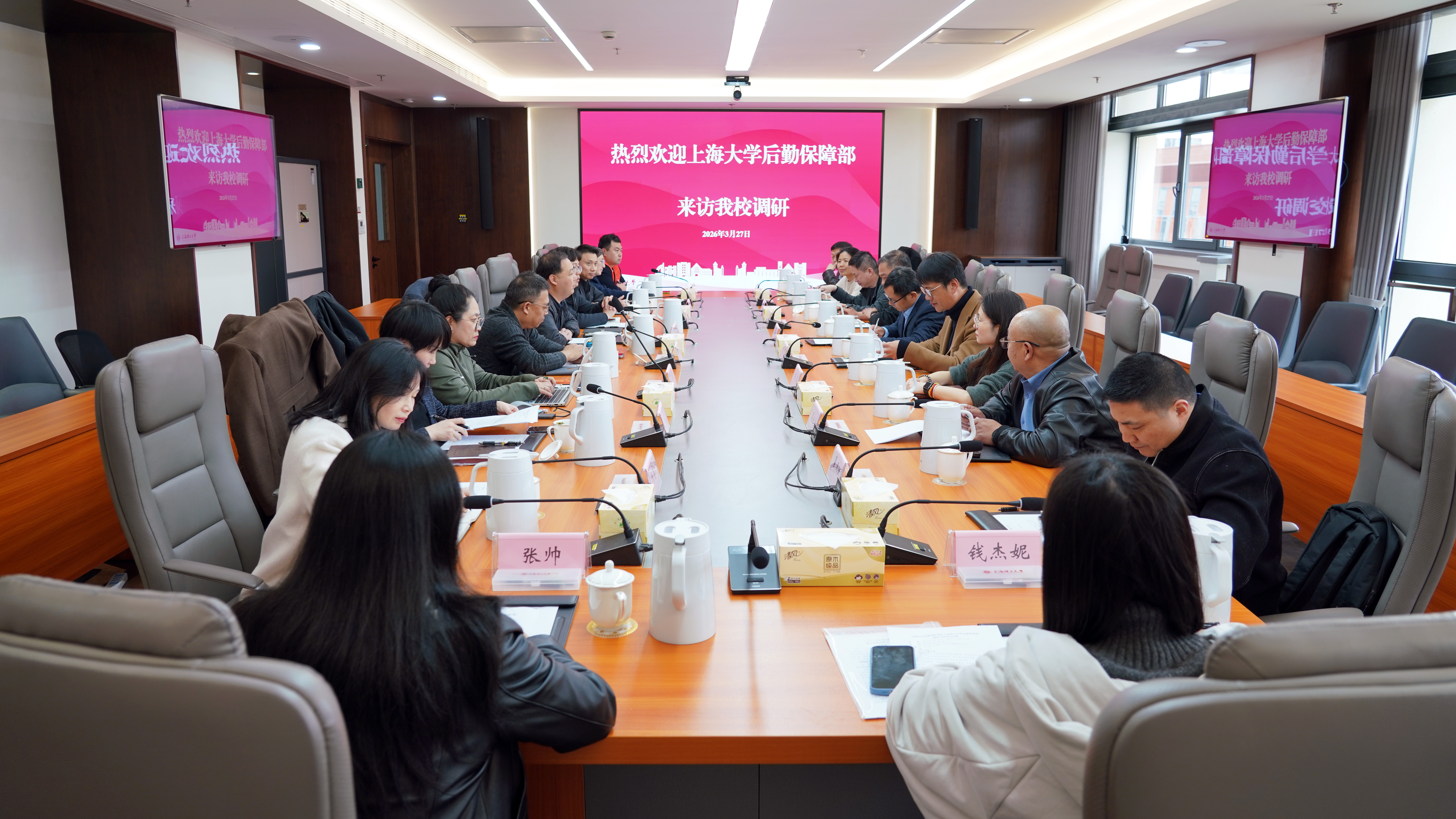 為加強校際后勤工作交流,共促高校后勤服務保障能力提升,3月27日下午,上海大學后勤保障部黨委副書記、部長孟祥棟一行來訪我校,圍繞餐飲服務、經(jīng)營管理、物業(yè)管理、能源保障、公寓管理等核心業(yè)務與我校后勤管理處開展專題調(diào)研交流。