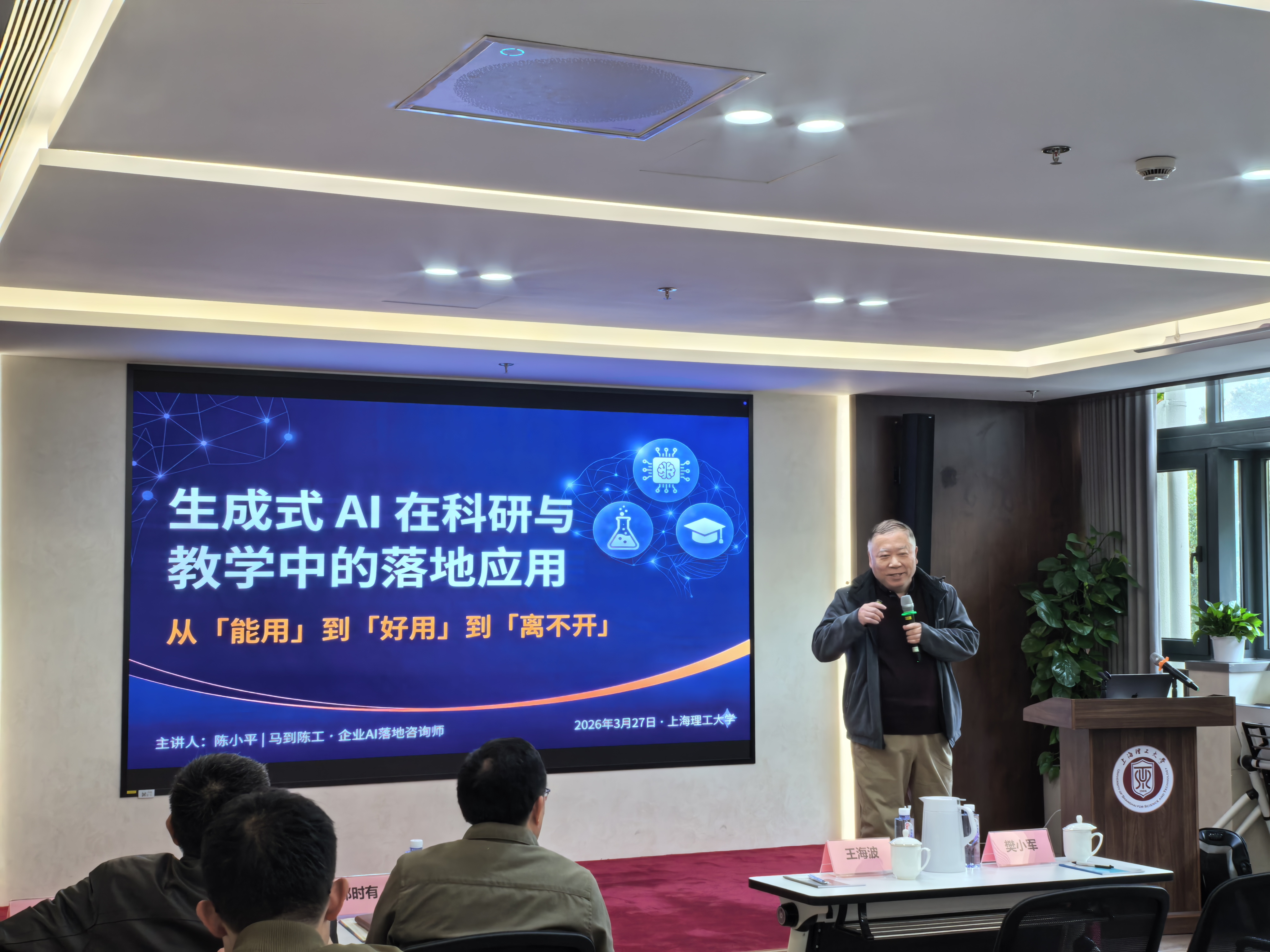 為進(jìn)一步加強(qiáng)組織建設(shè),提升盟員履職能力,凝聚奮進(jìn)力量迎接學(xué)校建校120周年,3月27日,民盟上海理工大學(xué)委員會(huì)舉辦青年骨干盟員培訓(xùn)班。特邀民盟上海市委宣傳部原部長(zhǎng)、陳望道研究會(huì)副會(huì)長(zhǎng)、李公樸研究會(huì)理事王海波,上海交大教育集團(tuán)人工智能培訓(xùn)中心特聘專(zhuān)家陳小平作專(zhuān)題報(bào)告。學(xué)校黨委統(tǒng)戰(zhàn)部副部長(zhǎng)樊小軍、民盟上海理工大學(xué)委員會(huì)主委張淑平教授出席并講話,民盟上海理工大學(xué)委員會(huì)秘書(shū)長(zhǎng)鄭時(shí)有教授主持培訓(xùn)活動(dòng)。
