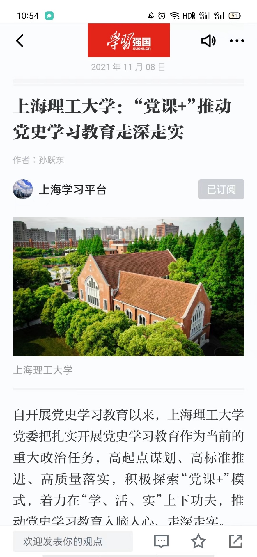 2021年11月,我校研習(xí)社開展黨課宣講活動(dòng),于學(xué)習(xí)強(qiáng)國平臺(tái)進(jìn)行宣傳。